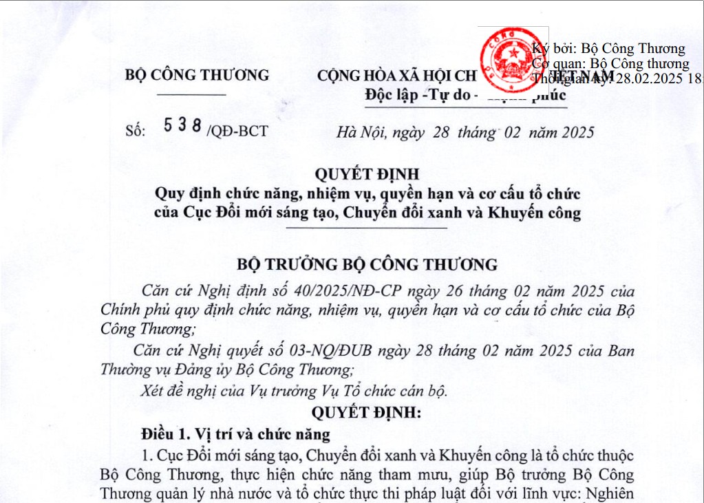 Như vậy từ ngày 1/3/2025, Doanh nghiệp đăng ký dán nhãn năng lượng tại Cục đổi mới sáng tạo, chuyển đổi xanh và Khuyến công .