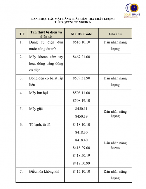 Hiện tại có 7 mặt hàng (kèm mã HS code) bắt buộc phải thực hiện kiểm tra chất lượng theo QCVN9:2012/BKHCN, bao gồm: