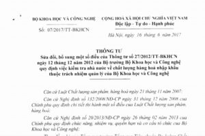 THÔNG TƯ 07/2017/TT-BKHCN SỬA ĐỔI THÔNG TƯ 27/2012/TT-BKHCN
